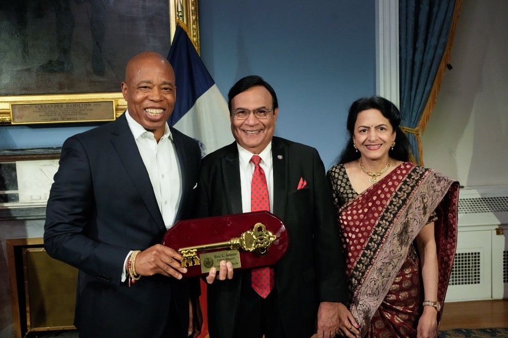 Former New York City Mayor Eric Adams, Dr. Hari Shukla, & Kirti Shukla